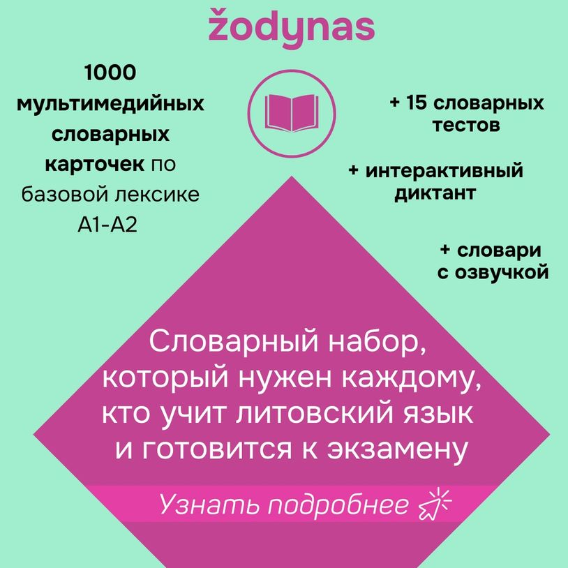 Здравствуйте! Надеемся, вам нравятся учебные материалы по литовскому языку, которые мы создаем на mokymasis.online. Мы рады предоставлять их бесплатно, но обеспечение работы нашего портала требует значительных материальных ресурсов.